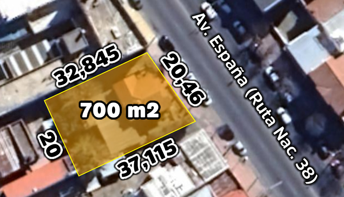 En la Avenida España de La Falda (Ruta Nacional 38), a 300 m. de Avenida Edén. Esta propiedad de 700 m2 de terreno te permite edificar un edificio de 3 plantas. Cuenta con todos los servicios (agua, cloacas, internet y cable).